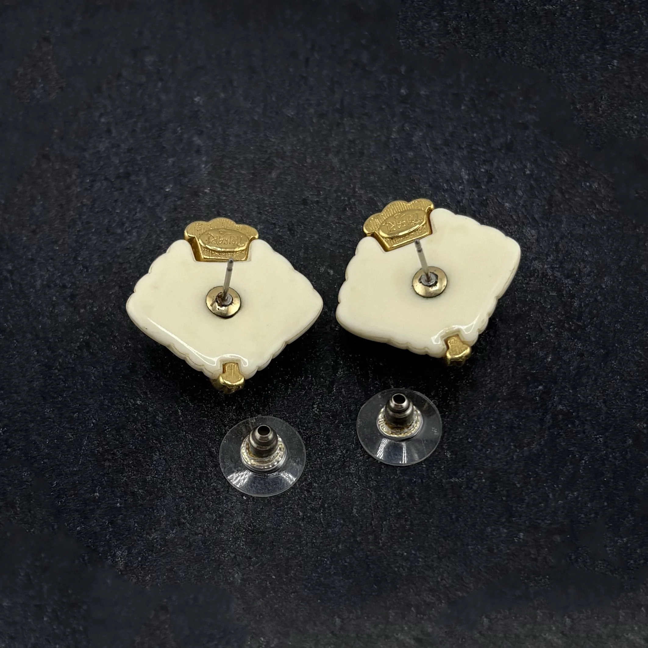 Add a pop of retro flair to your look with these 1980s enameled stud earrings. These vintage earrings feature a vibrant enamel finish, showcasing bold colors and geometric designs typical of the era. Perfect for those who love to make a statement, these studs capture the fun and fearless spirit of the '80s. Wear them to bring a touch of vintage charm and playful sophistication to any outfit.